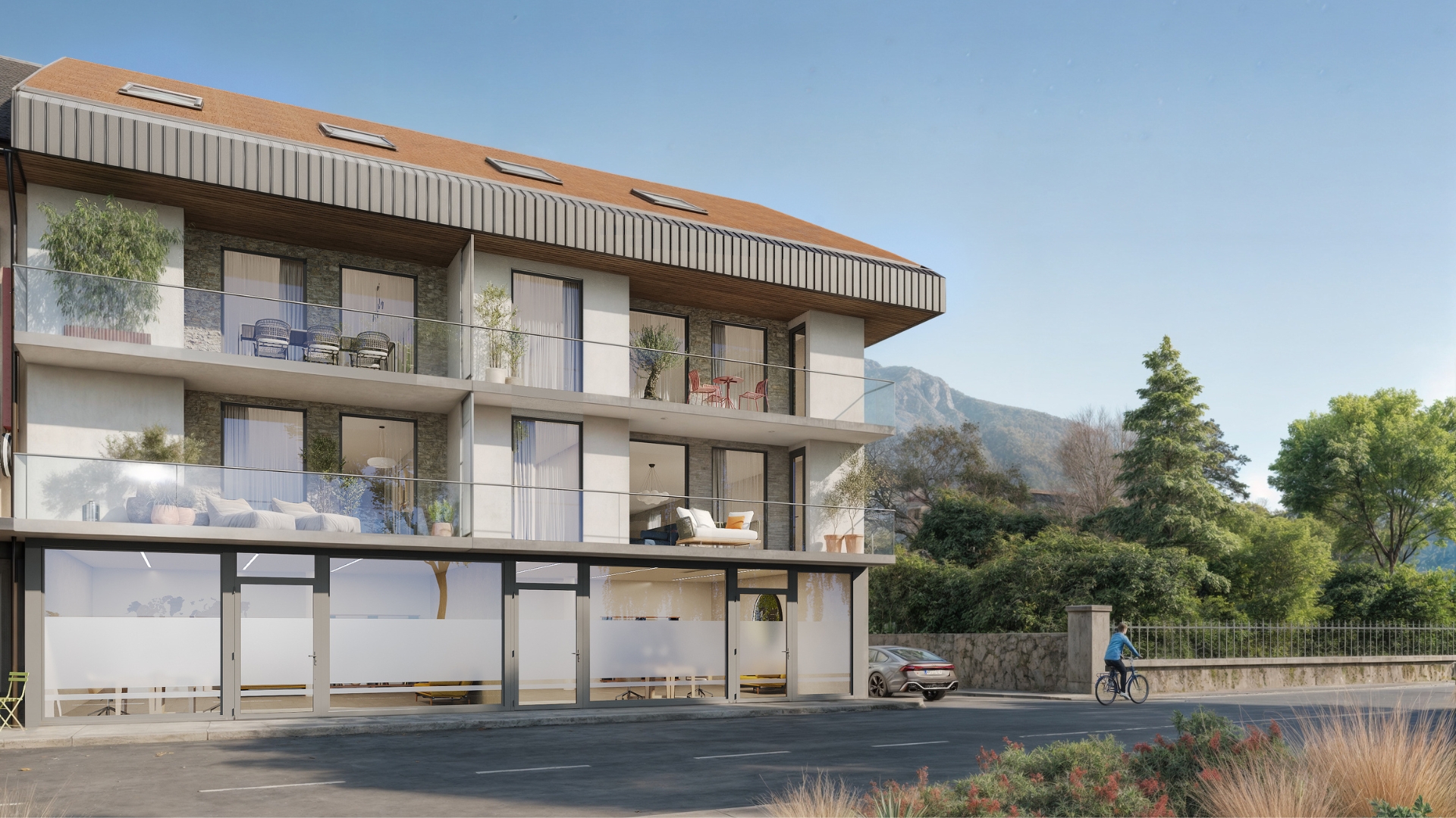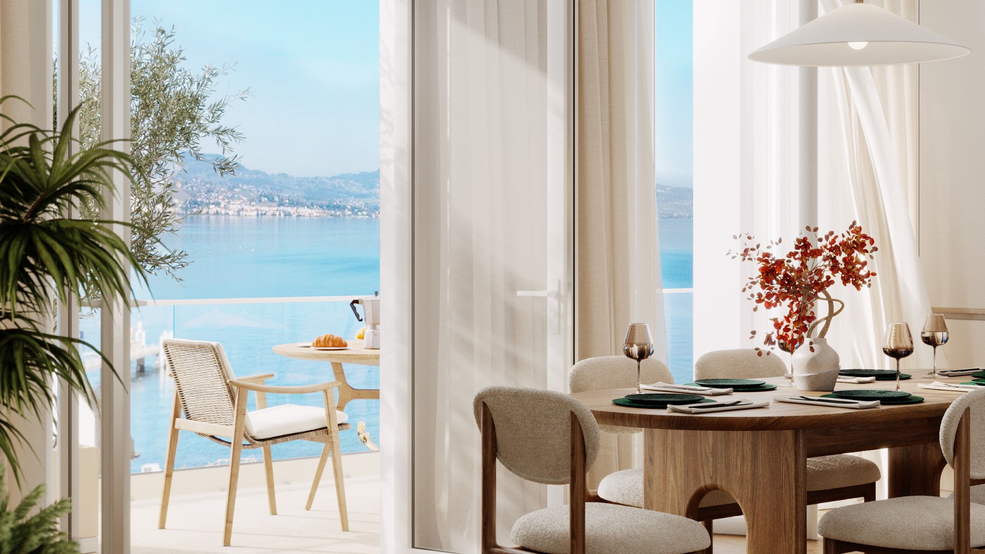 Gran’Rive s’intègre harmonieusement sur une parcelle privilégiée, en première ligne du lac, offrant une vue imprenable sur les eaux scintillantes et les sommets environnants.